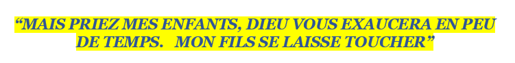 La Vierge Marie appelle sans cesse à la prière et au jeûne. Grâce à leur lien à Dieu, bien des personnes échappent à l’emprise du Diable. Apprenons donc à nos enfants à PRIER!