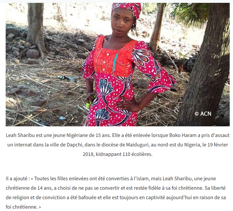 Nous avons le souvenir de Boko Haram qui avait enlevé des lycéennes. Leah Sharibu est encore prisonnière de ce groupe terroriste.