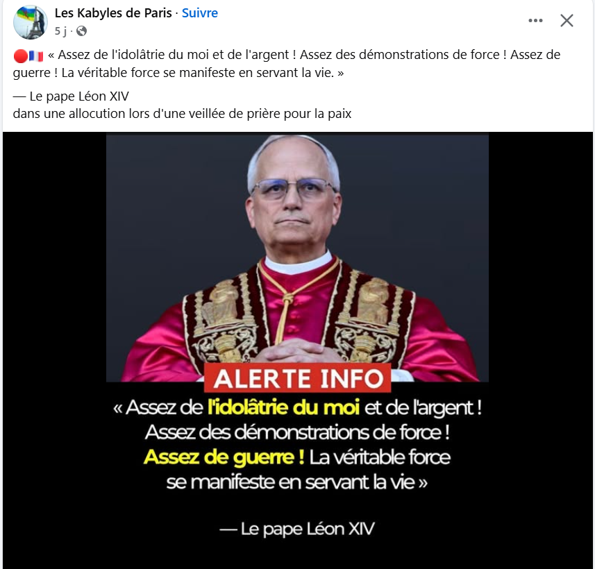 Tandis que Donald Trump s’excite et fait bien du mal, pape Léon reste calme mais ferme. On voit là nettement ce qui distingue la façon de vivre selon l’esprit du monde et celle selon l’Esprit Saint. « VIENS, ESPRIT SAINT! »